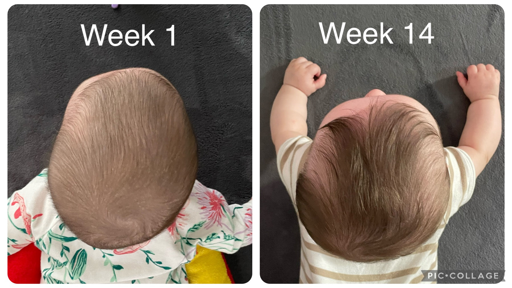 Six weeks after starting, we noticed subtle improvements. Week by week, Ellie’s head became rounder until at 14 weeks her head shape had completely transformed.